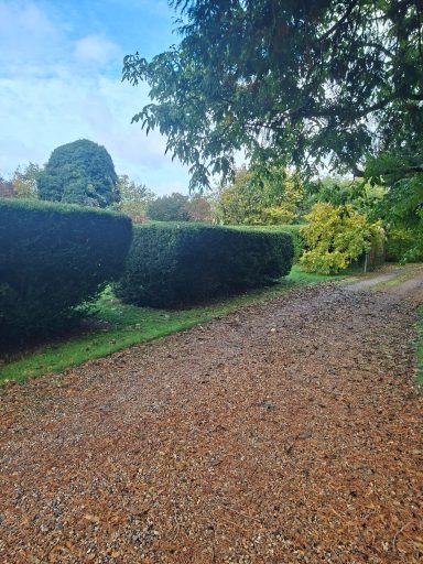 Garden clearance for client before /after. Pruning of lime trees before/after. Hedge trimming. Large lawn regular maintenance . Removal of old bed, plant new tree and lay gravel. Harnham Croft care home, jet washing of decking,